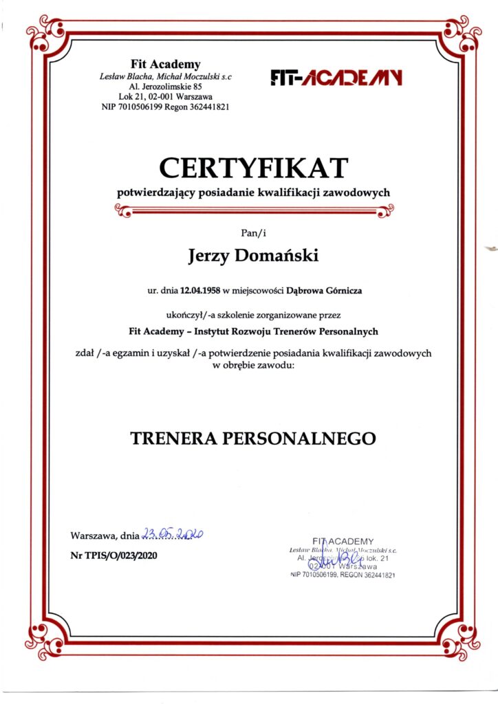 Bazując na latach własnych prób obfitujących w sukcesy jak i drobne porażki, podejmując niejednokrotnie trudne decyzje, utrzymując stały kontakt z osobami, które żyją fit, stworzyłem swój autorski program DomFit. Jest to program sportowy, zdrowotny i odchudzający dla każdego. Od dziecka po seniora, od amatora do zawodowca.